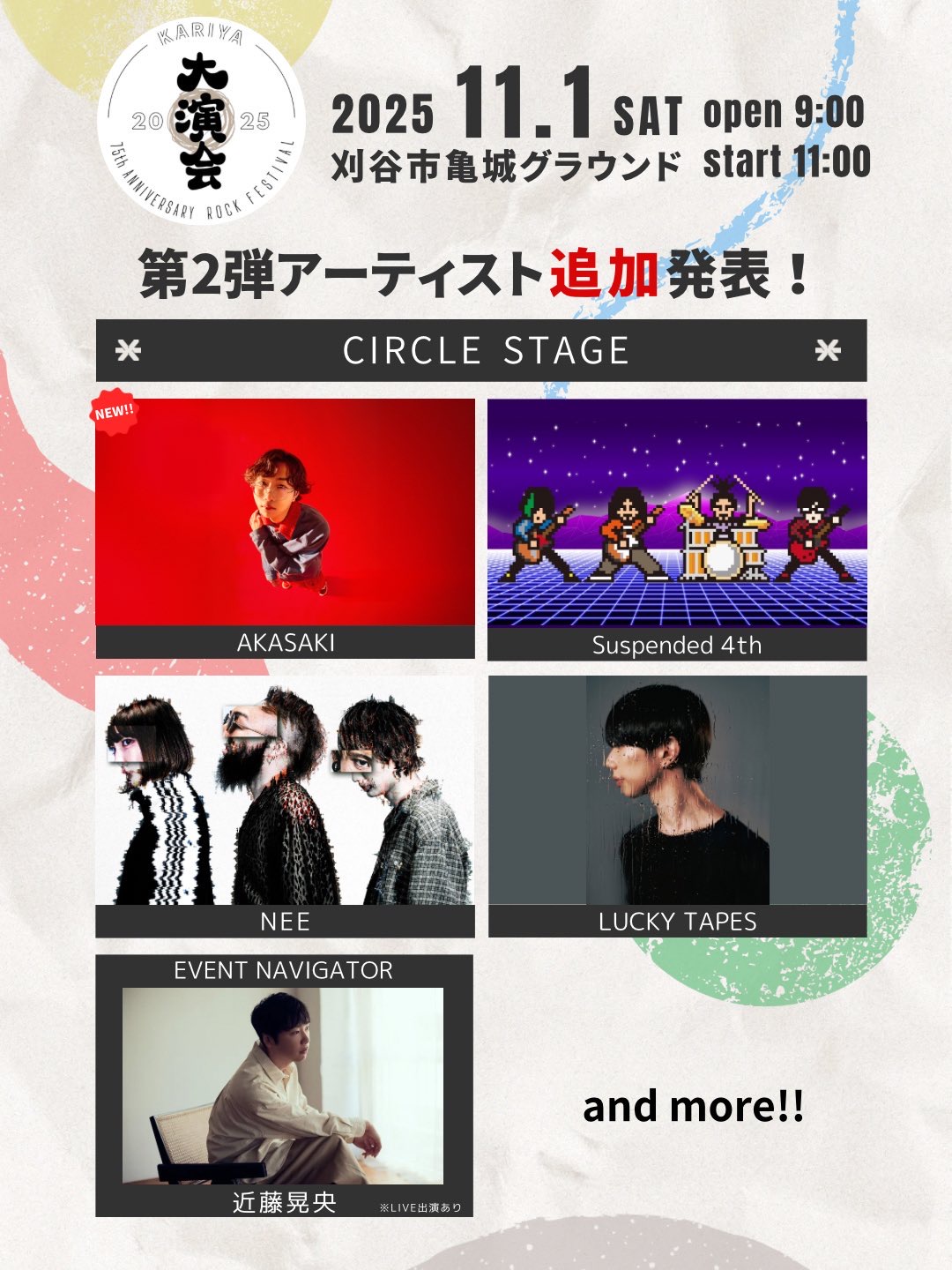 愛知県刈谷市で開催される屋外音楽フェス「KARIYA大演会 2025」にAKASAKI の出演が決定しました!
