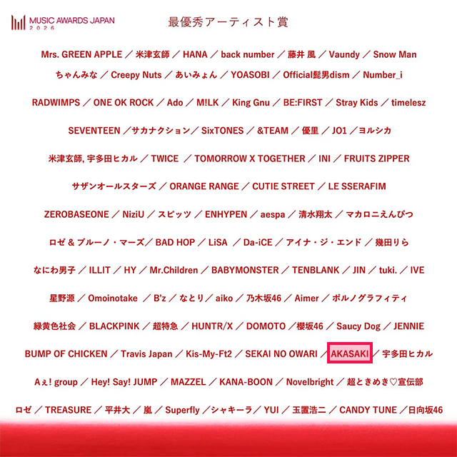「MUSIC AWARDS JAPAN 2026」に AKASAKIが2部門でエントリーされました!